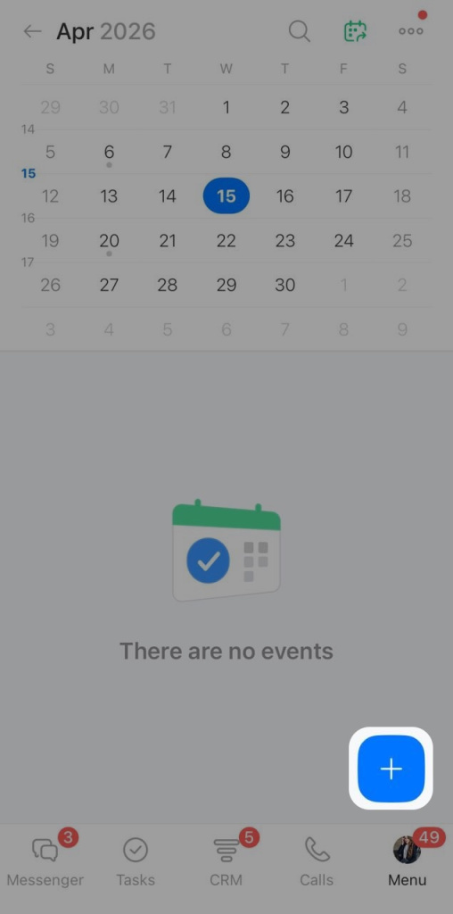 1. Open the Calendar section and tap Plus (+).