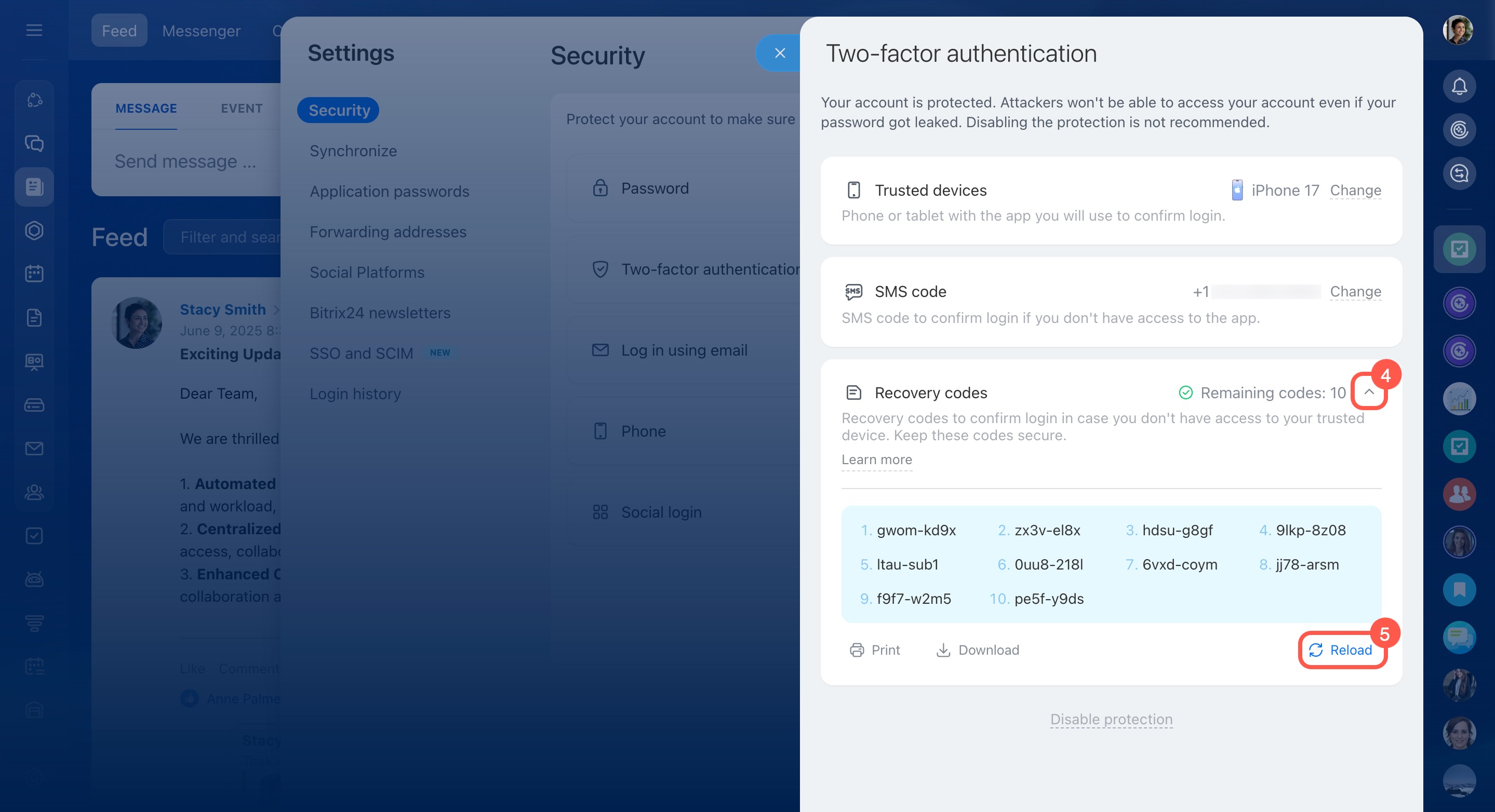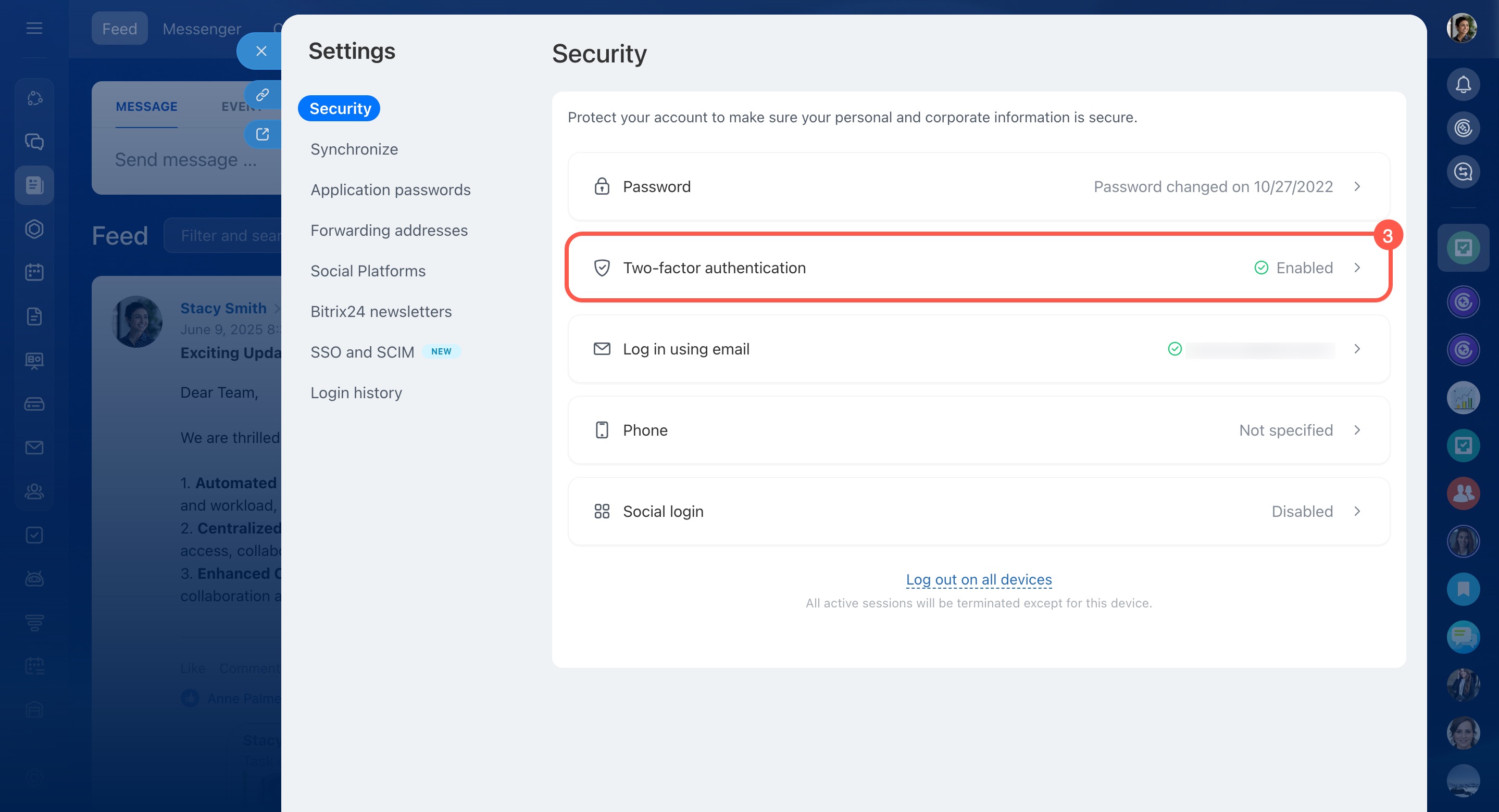 - You did not log out of Bitrix24 on all devices. If you did, reconnect the trusted device.