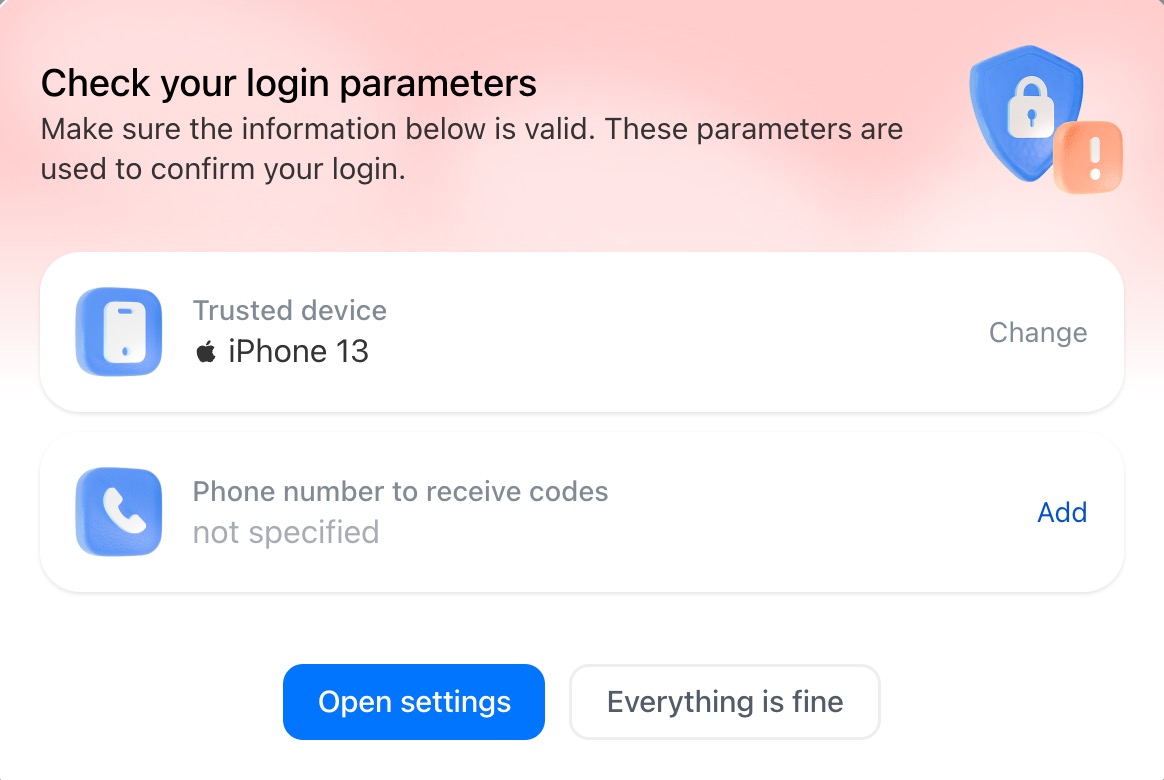 This banner appears every 180 days. It asks you to confirm that your trusted device details and linked phone number are still correct.