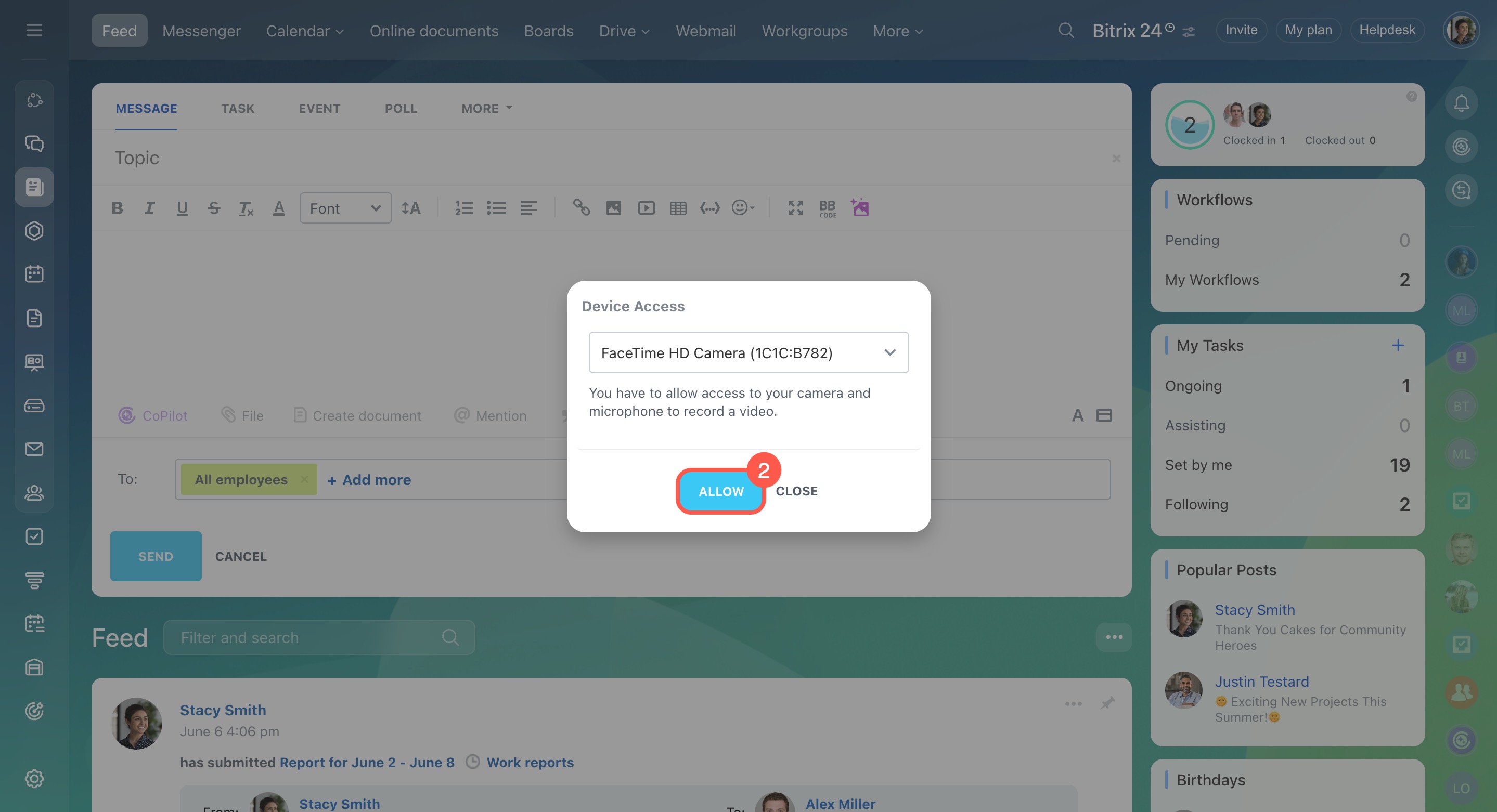 You can record a video in Feed and share it with your team.
