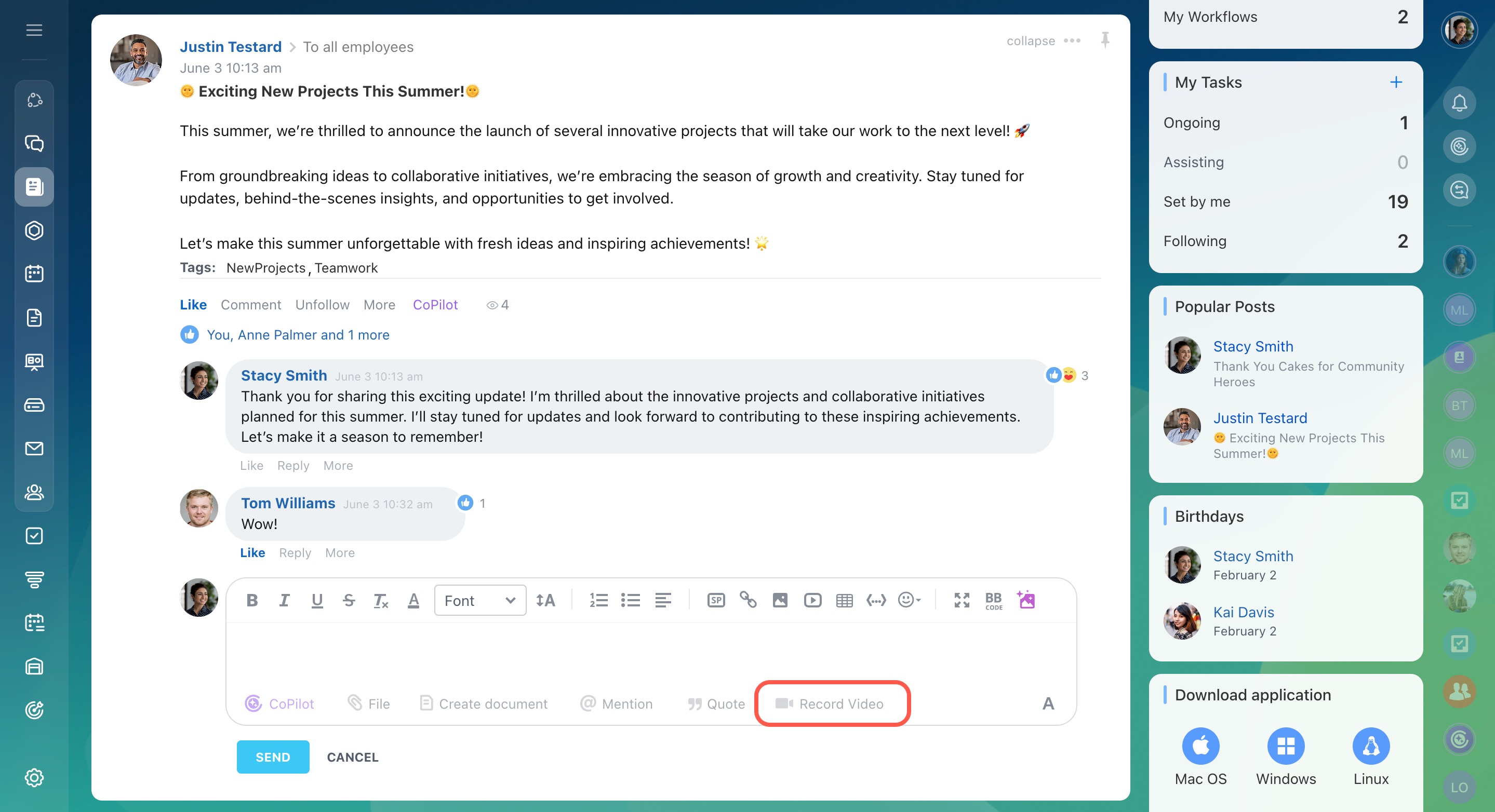 You can also record videos in comments to the Feed posts.