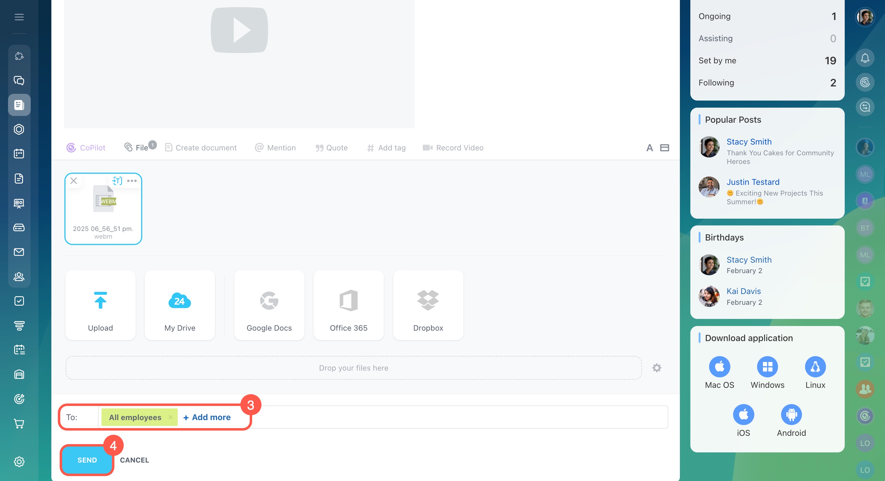 - Record a video and select the recipients.